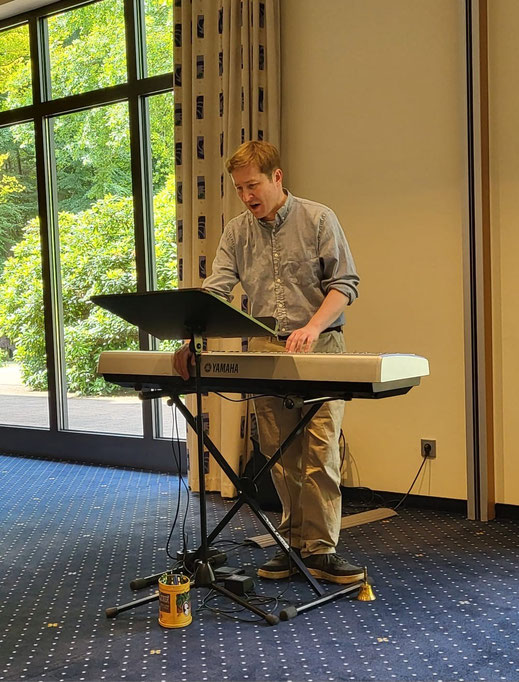 Aber beim Blick nach vorn auf den Abschluss des Jubiläumsjahres war Nikolaus wieder voll des Lobes: neue Klänge aus Übersee seien zu hören dort droben, was die Engelschöre sehr erfreue, zumal auch weibliche Komponierende nun zu Gehör gebracht würden. Kantor Lukas Maschke bereite mit seinem charmanten Lächeln, amüsanten Anekdoten und diskreten, aber genauen Änderungswünschen den Chor vor: „Singt doch einfach, wie’s da steht – dann hört ihr schon, wie es besser geht“ zitierte Nikolaus gekonnt des Kantors Wunsch.