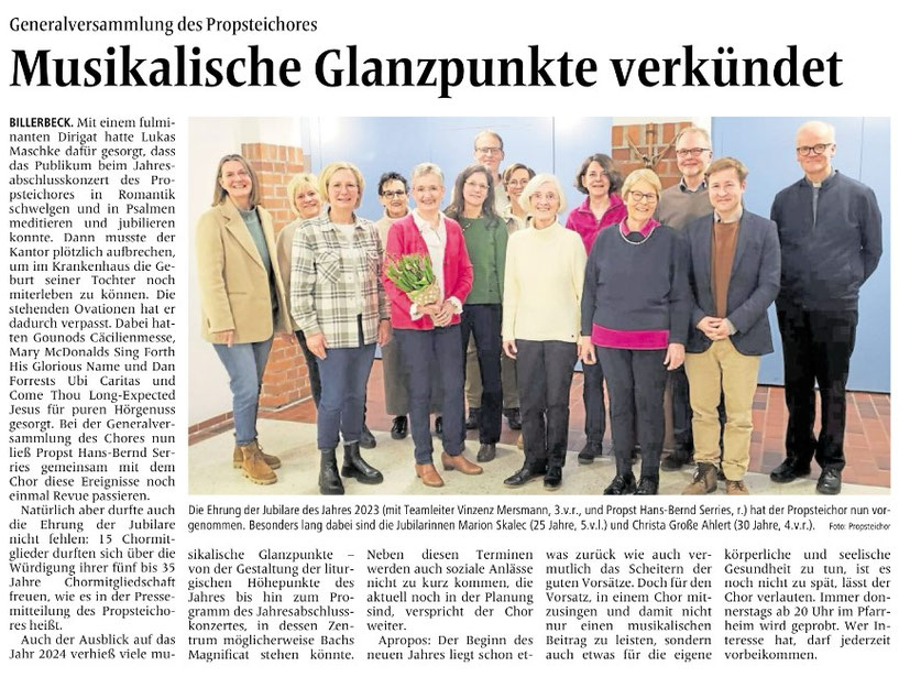 Mit Spannung wurde die Ankündigung des neuen Chorprogrammes durch Kantor Lukas Maschke, der nunmehr seit 5 Jahren die musikalische Leitung des Propsteichores in seiner neuen Heimat Billerbeck hat, erwartet: