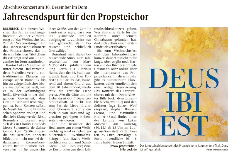 A propos: Geschenke beziehungsweise Konzertkarten (das ideale Weihnachtsgeschenk für alle Musikliebhaber) gibt es wie immer in der Bücherschmiede bei Frau Gessmann oder online unter https://www.billerbeck-propsteichor.de. In diesem Jahr gibt es nummerierte Platzkarten, daher empfiehlt sich eine zeitige Reservierung.